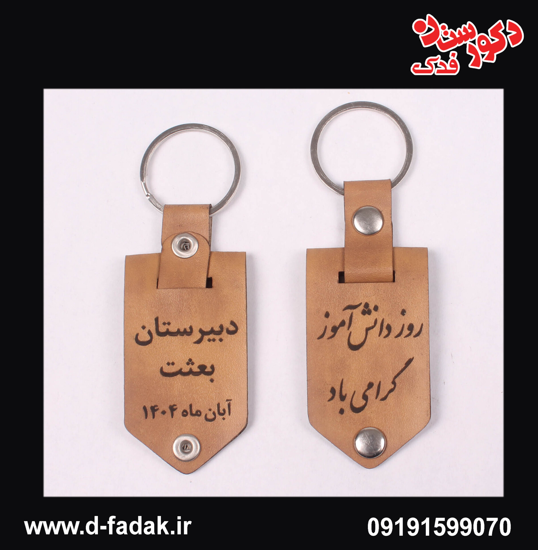 این جاسویچی چرمی هدیه روز دانش آموز دوطرفه می باشد و دو متن متفاوت روی آن حکاکی می شود.